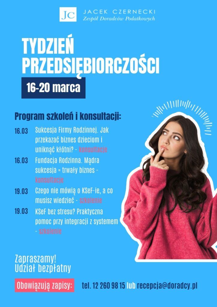 - 16 marca od 09:14 do 14:00 – Fundacja Rodzinna. Mądra sukcesja = trwały biznes – konsultacje, obowiązuje rezerwacja terminu
