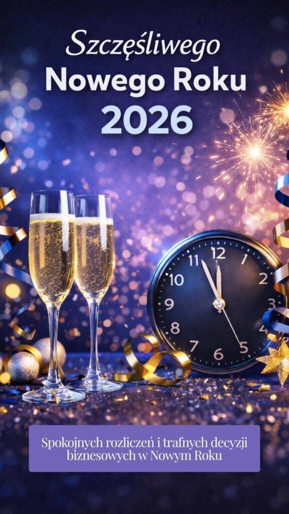 Dziękujemy za zaufanie i współpracę w mijającym roku. W Nowym Roku pozostajemy do Państwa dyspozycji — tak, aby podatki, księgowość i prawo wspierały Państwa biznes, a nie go komplikowały.